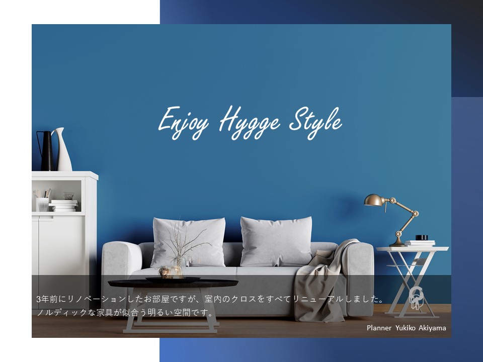 北欧スタイルの人気と共に不動の人気を誇るブルーグレーのアクセントクロスをワンポイントにした洋室は、シンプルながらも落ち着く空間に仕上がりました。ナチュラル、モード系など幅広いテイストのインテリアと合わせやすくなるよう、同じブルーグレーのクロスでも少し濃いめのカラーを選びました。